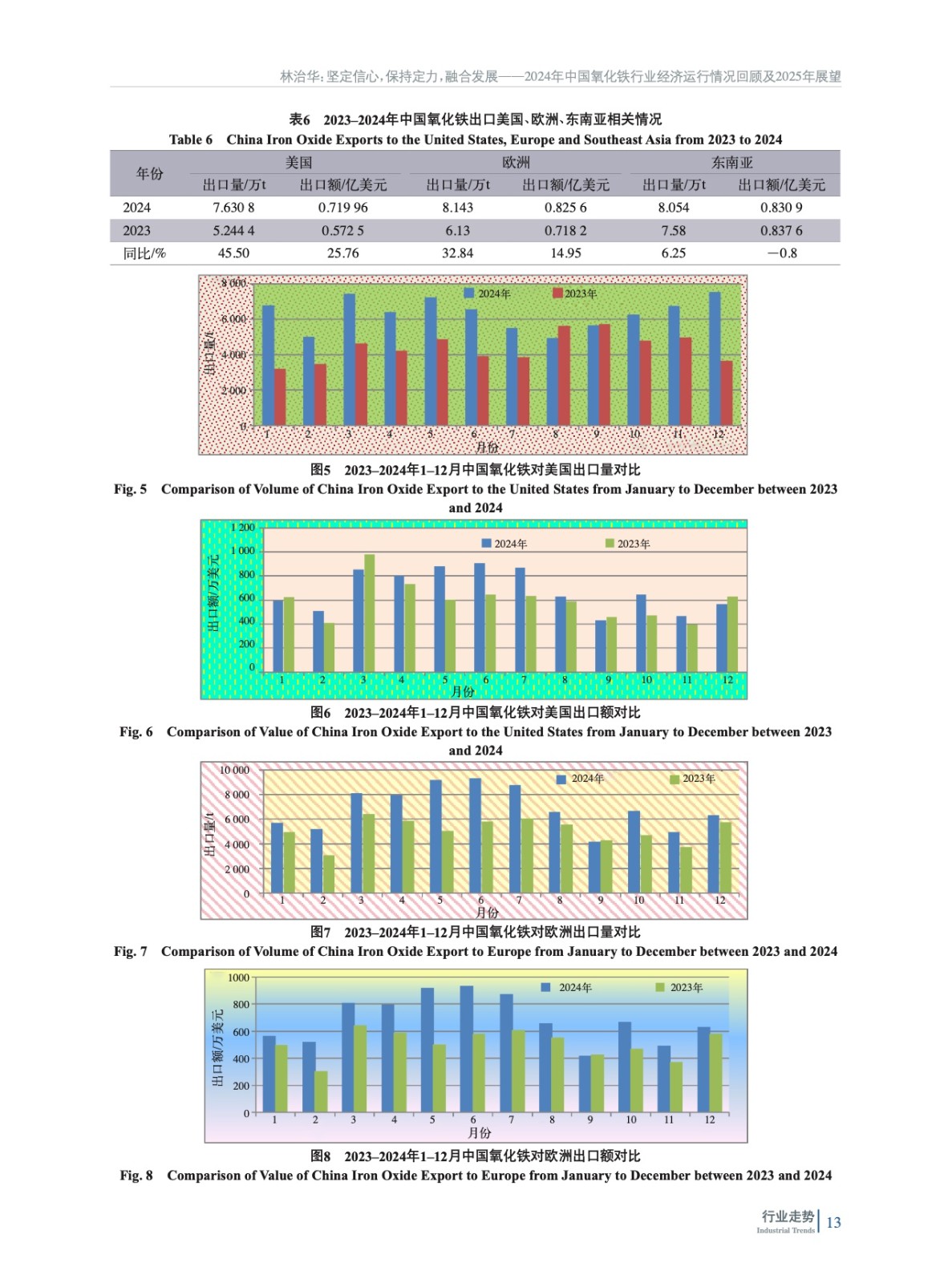 摘要:綜述了2024年中國氧化鐵行業(yè)所處的經(jīng)濟環(huán)境,梳理了各項技術(shù)經(jīng)濟指標(biāo)完成情況、生產(chǎn)營銷情況,并對行業(yè)進出口數(shù)據(jù)進行了分析,回顧了氧化鐵行業(yè)2024年整體運行情況,并對2025年發(fā)展方向進行了展望。