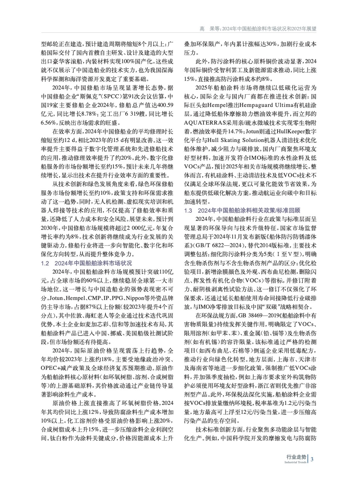 綜述了2024年中國造修船市場及船舶涂料市場情況,回顧梳理了2024年中國船舶涂料相關政策、標準,并對2025年中國造修船及船舶涂料市場進行了展望。