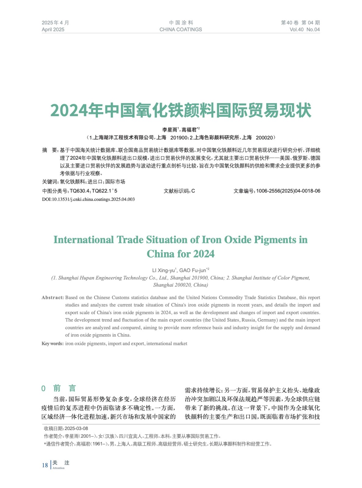 2024年中國氧化鐵顏料國際貿(mào)易現(xiàn)狀