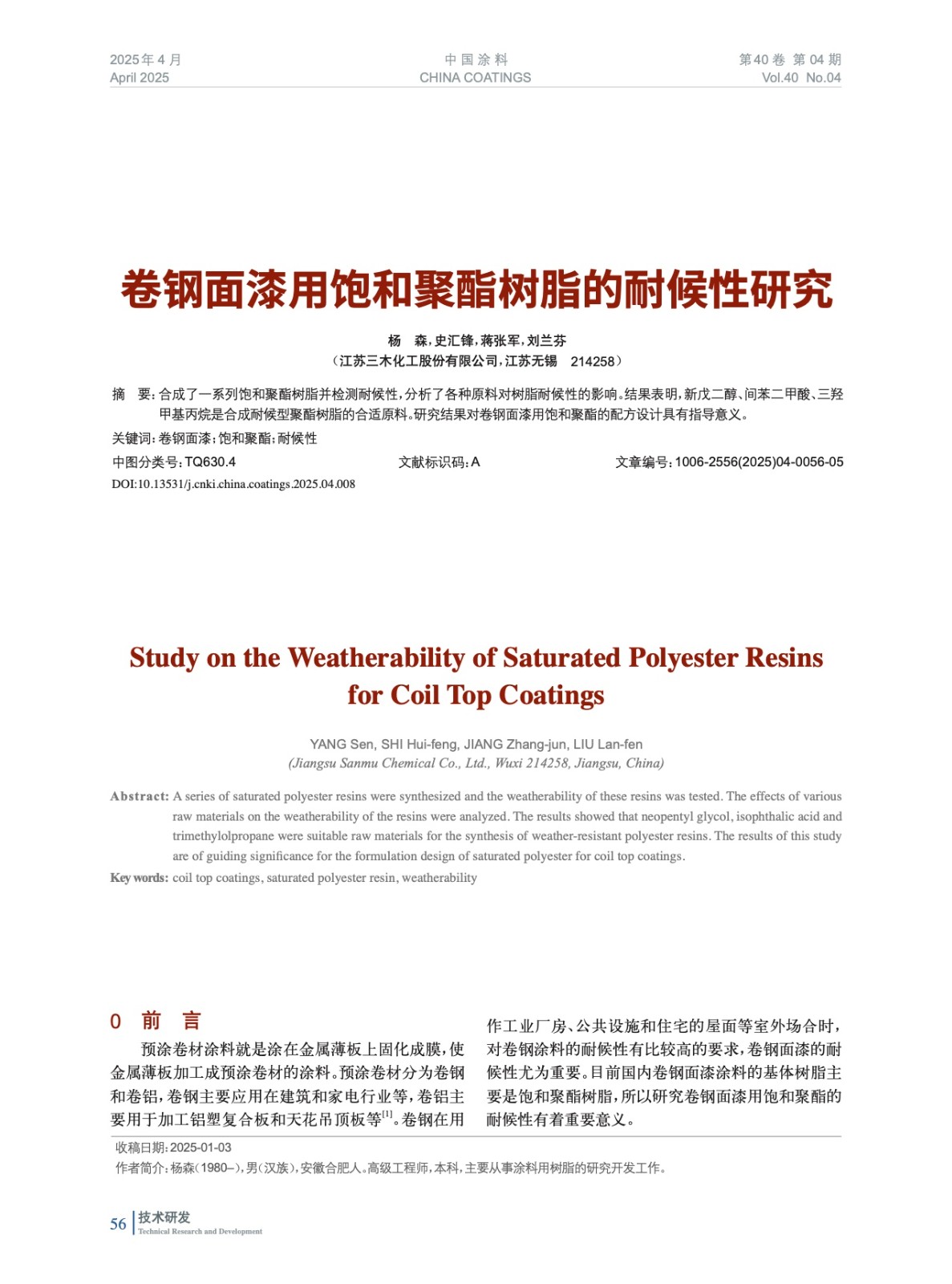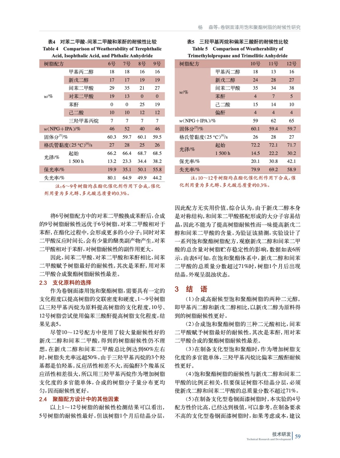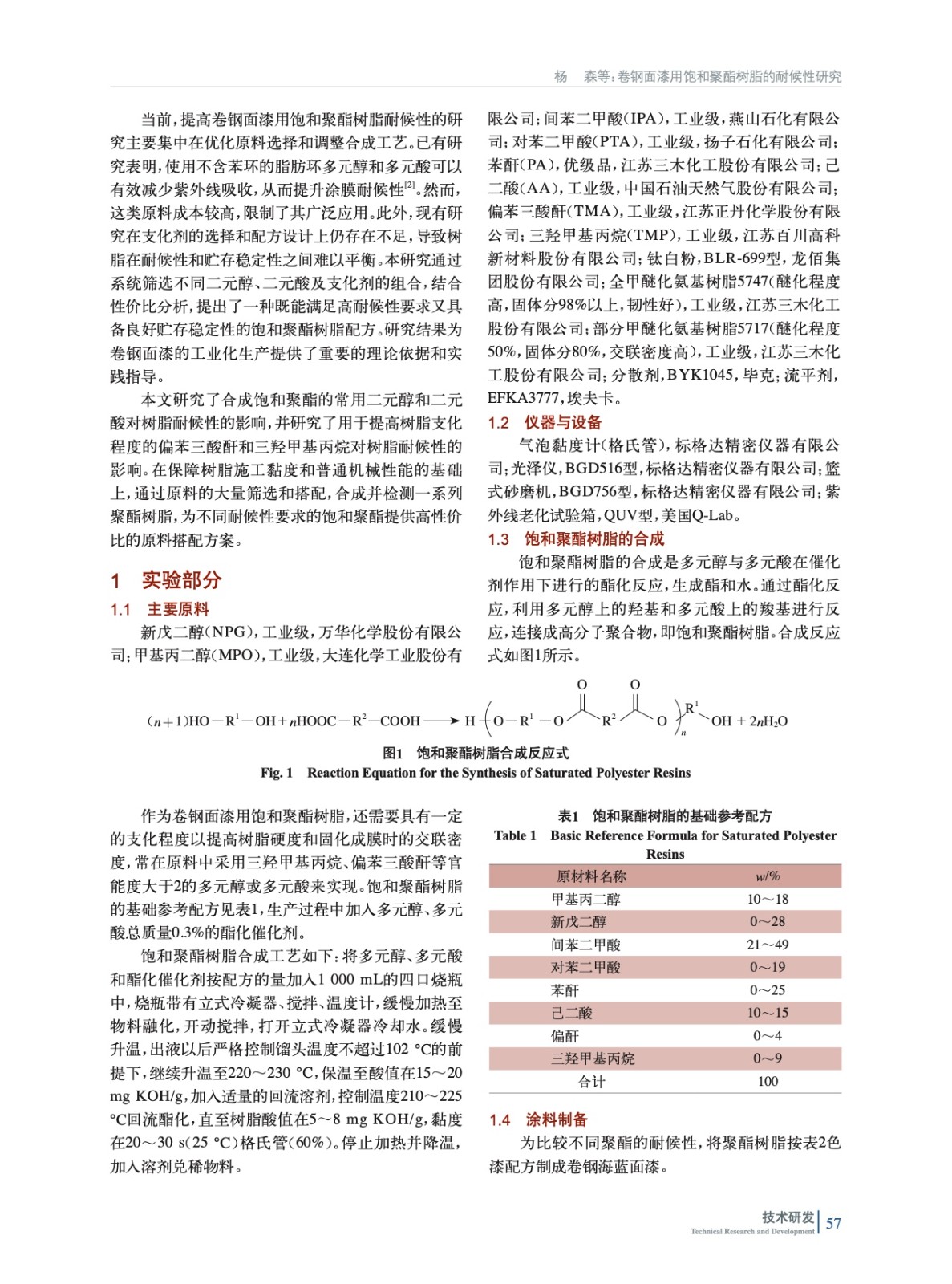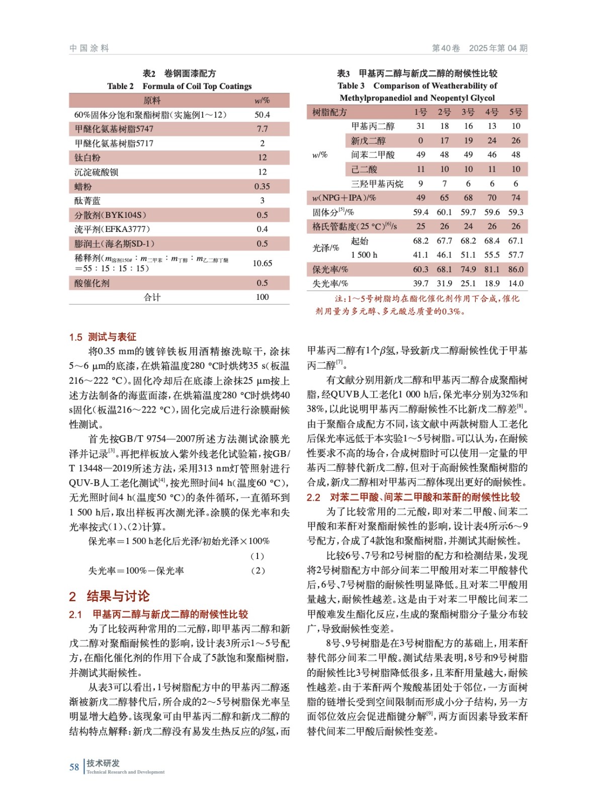卷鋼面漆用飽和聚酯樹脂的耐候性研究