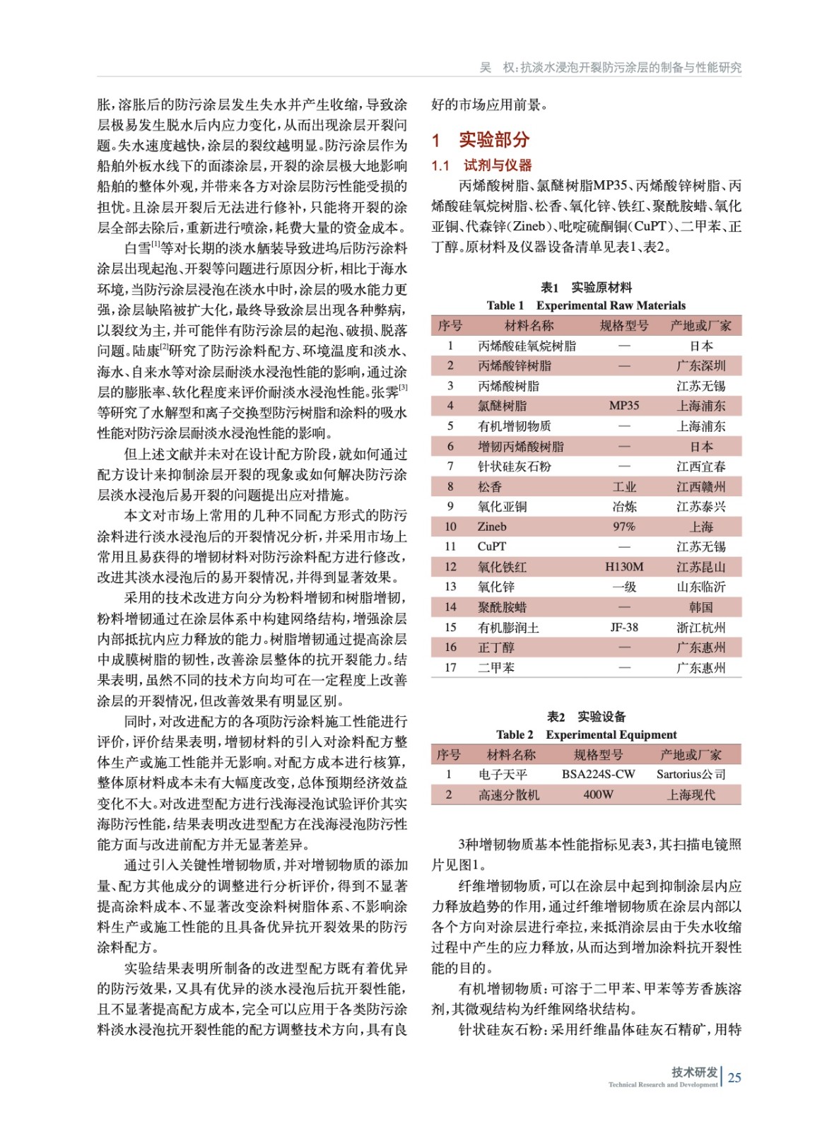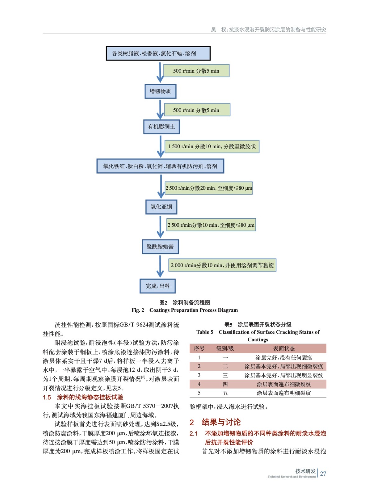 抗淡水浸泡開裂防污涂層的制備與性能研究