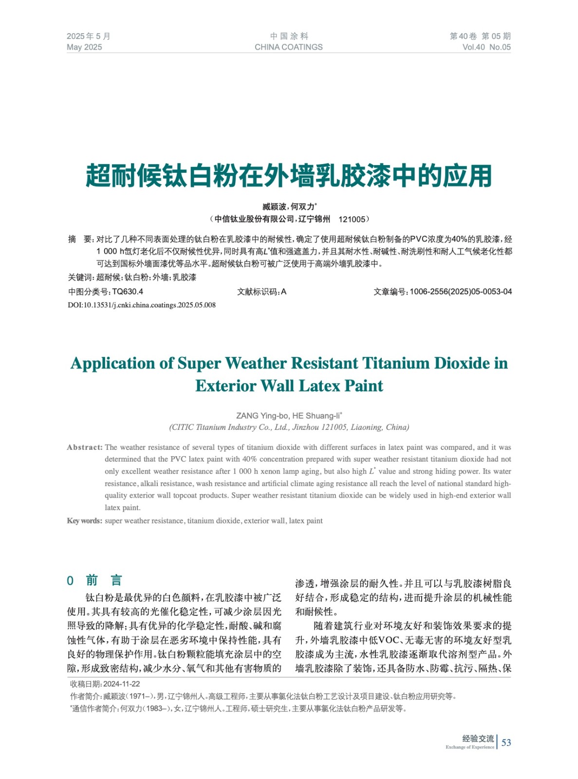 超耐候鈦白粉在外墻乳膠漆中的應(yīng)用