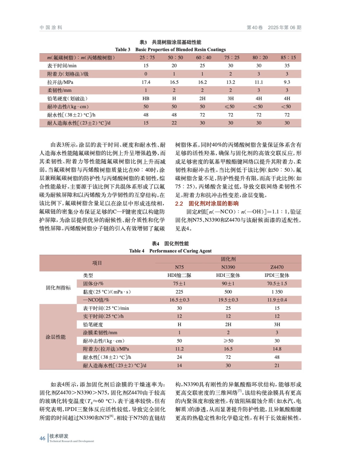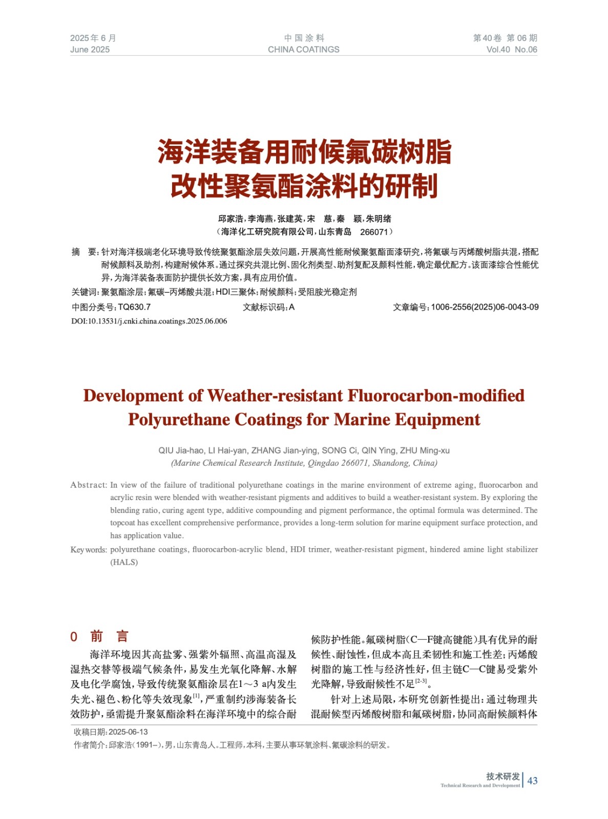海洋裝備用耐候氟碳樹脂改性聚氨酯涂料的研制