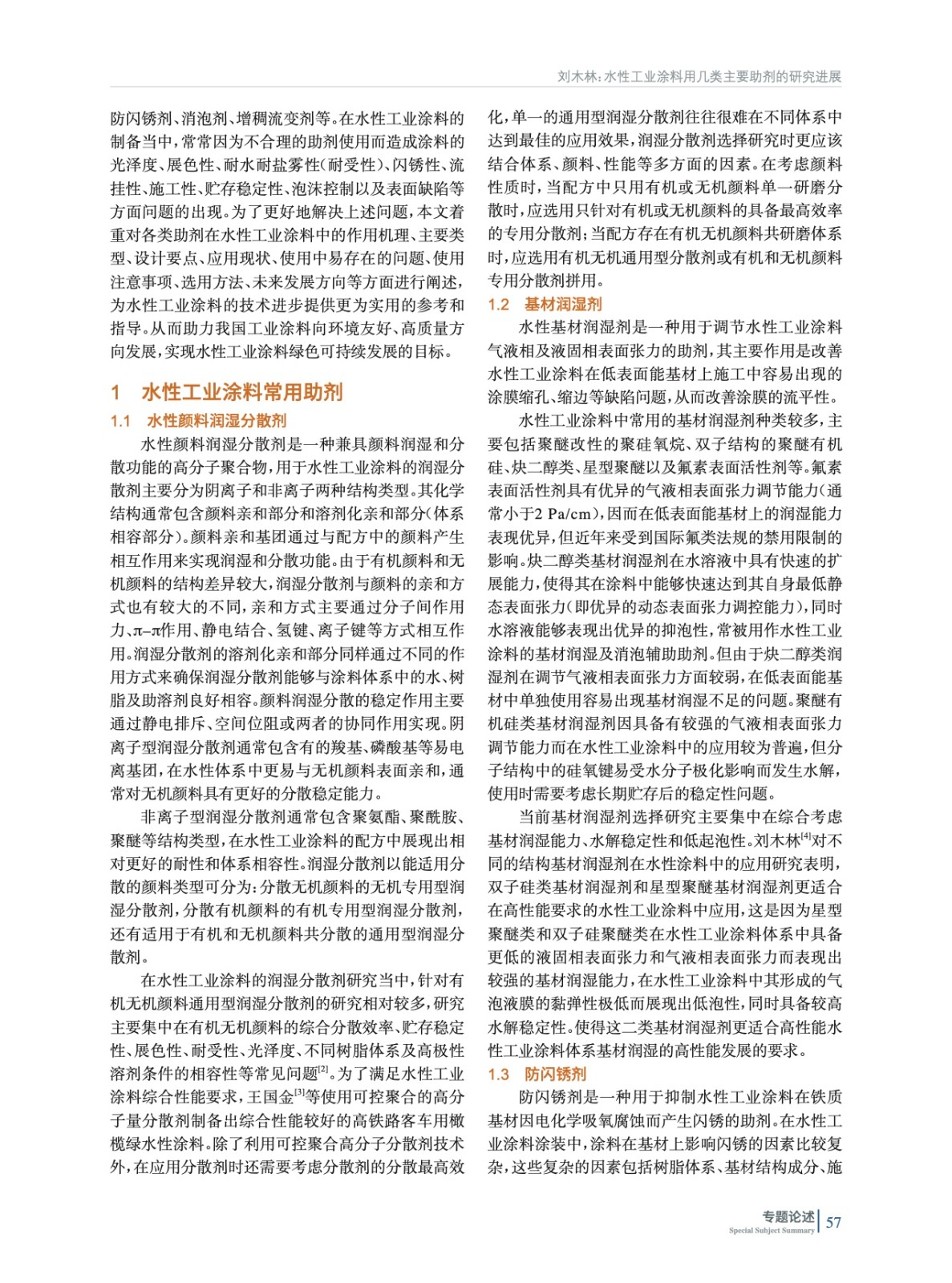 水性工業(yè)涂料用幾類主要助劑的研究進(jìn)展