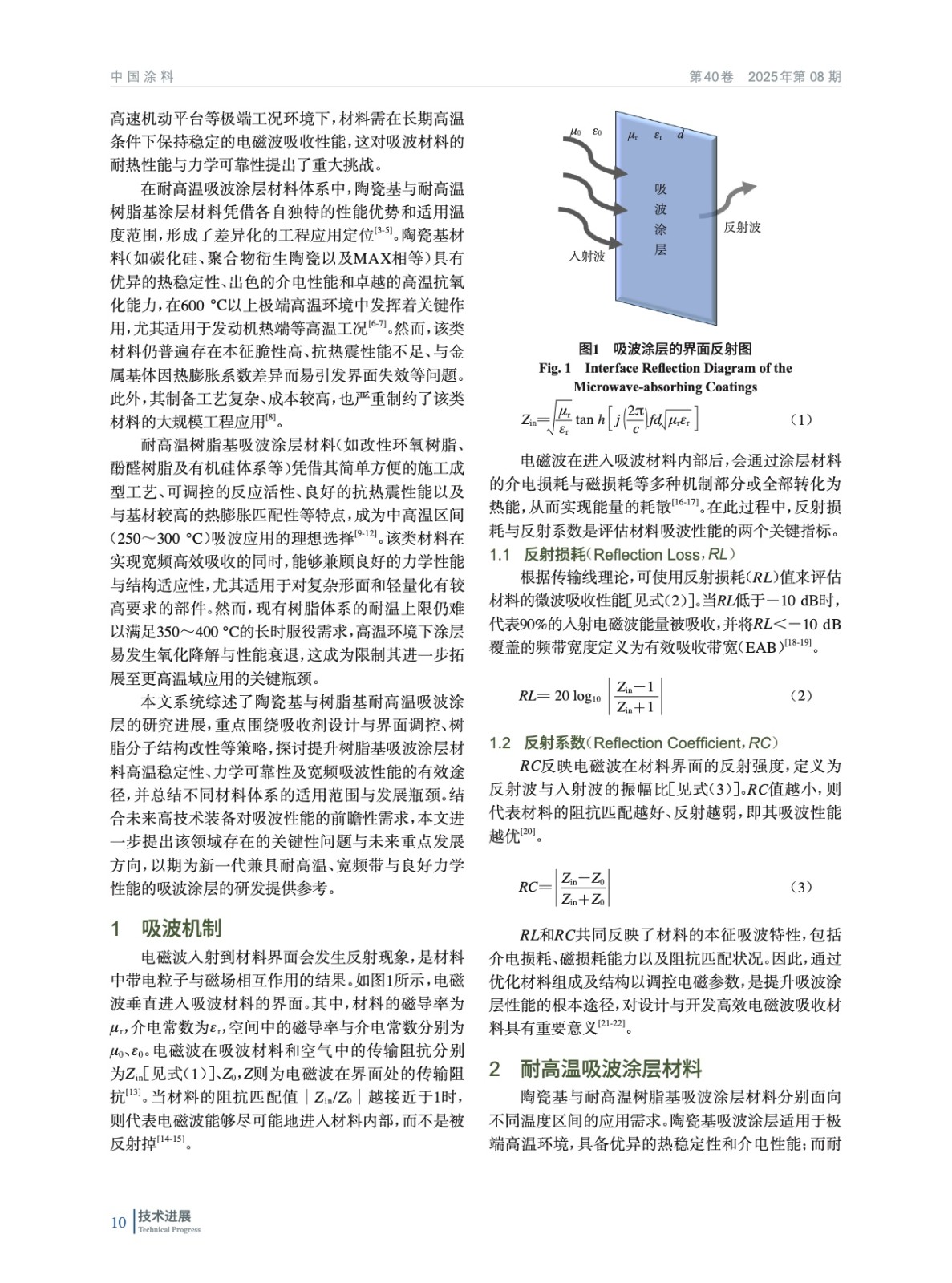 摘要:系統綜述了陶瓷基與樹脂基吸波涂層材料的研究進展,重點探討了吸收劑設計與界面調控、樹脂分子結構改性等策略對提升樹脂基涂層高溫穩定性、力學可靠性及寬頻吸波性能的協同作用。當前在吸波涂層高溫電磁參數演變規律、失效機制及長效性能預測等方面仍面臨挑戰。