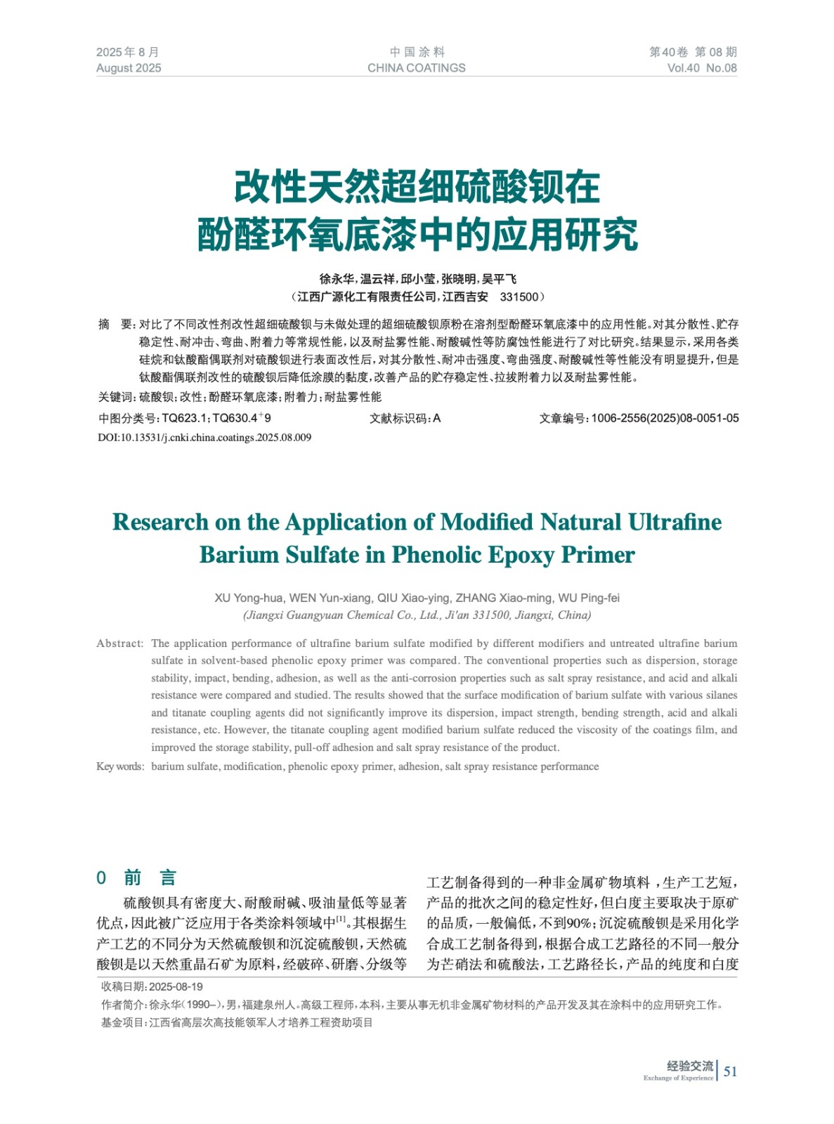 改性天然超細硫酸鋇在酚醛環氧底漆中的應用研究