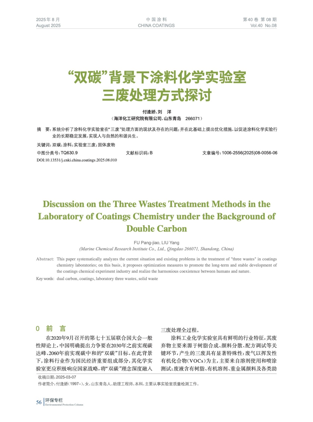 “雙碳”背景下涂料化學(xué)實(shí)驗(yàn)室三廢處理方式探討