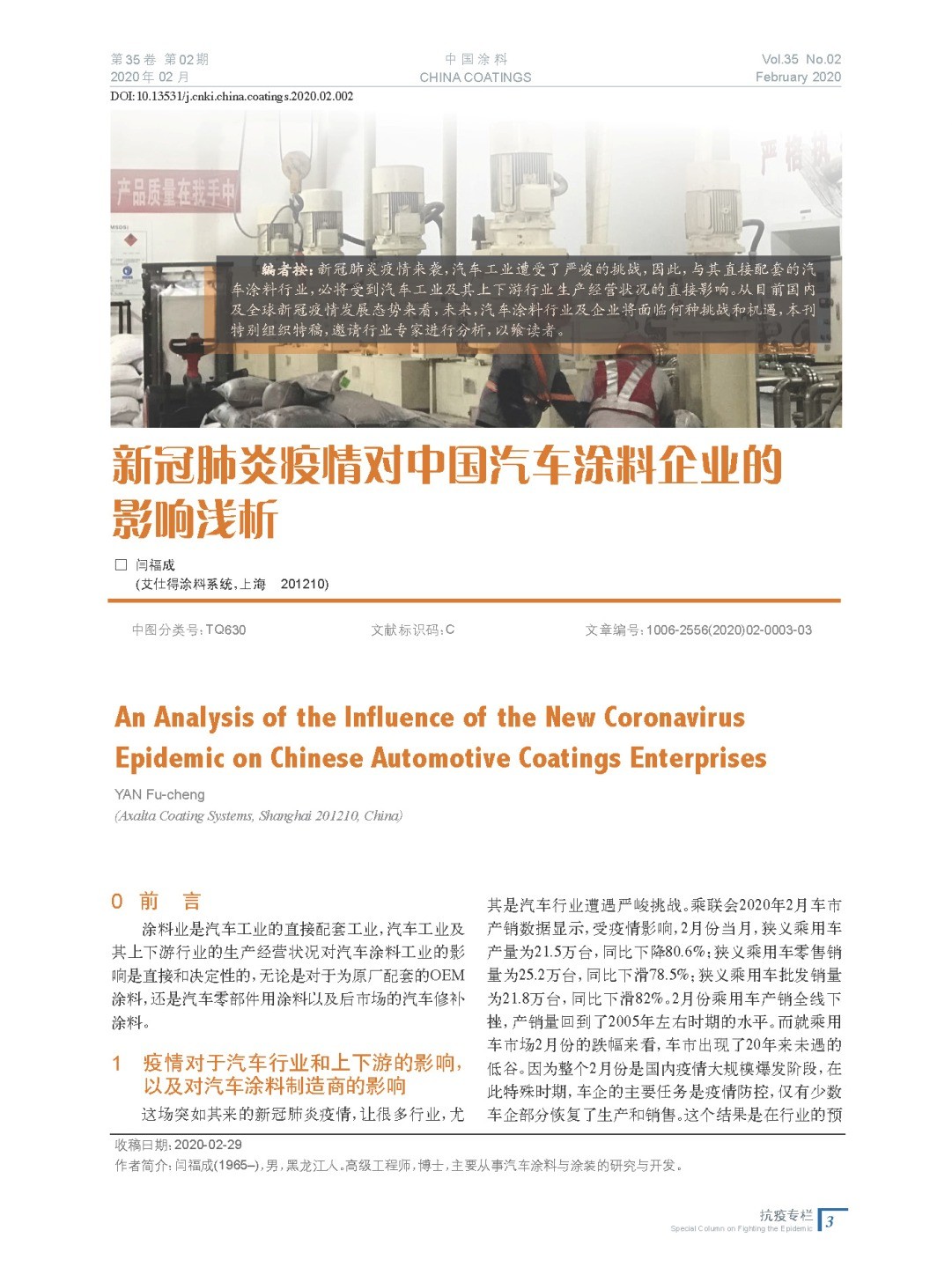 新冠肺炎疫情對中國汽車涂料企業(yè)的影響淺析