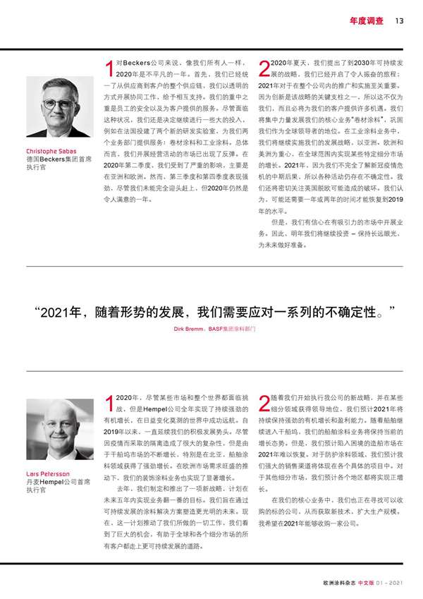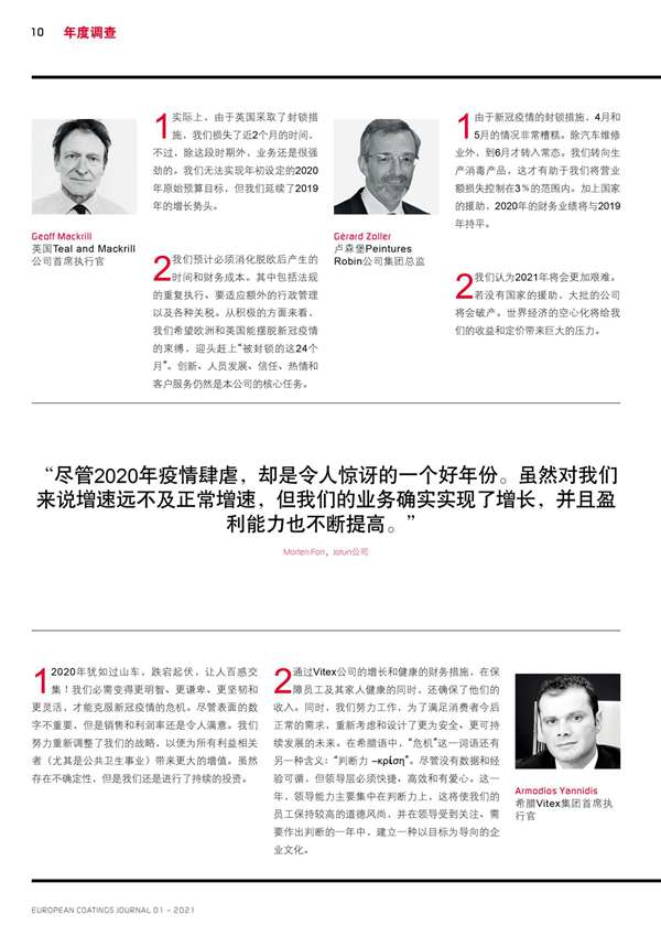 歐洲涂料生產(chǎn)商回顧了2020年的業(yè)績,并分享了他們對2021年的展望