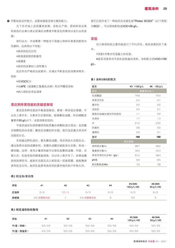 高性能、低VOC混凝土涂料用水性基料