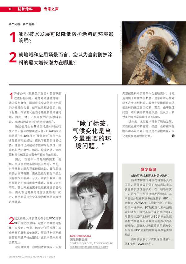 Tom Berckmanns,Cardolite Specialty Chemicals公司