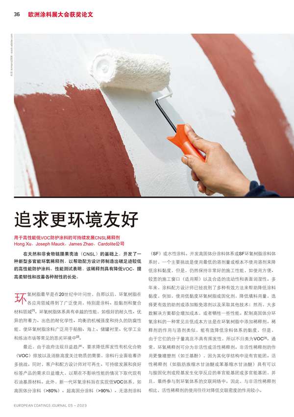 用于高性能低VOC防護(hù)涂料的可持續(xù)發(fā)展CNSL稀釋劑
