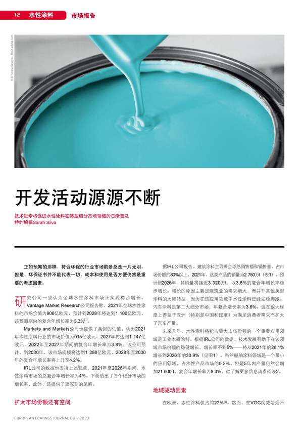 技術進步將促進水性涂料在某些細分市場領域的日漸普及