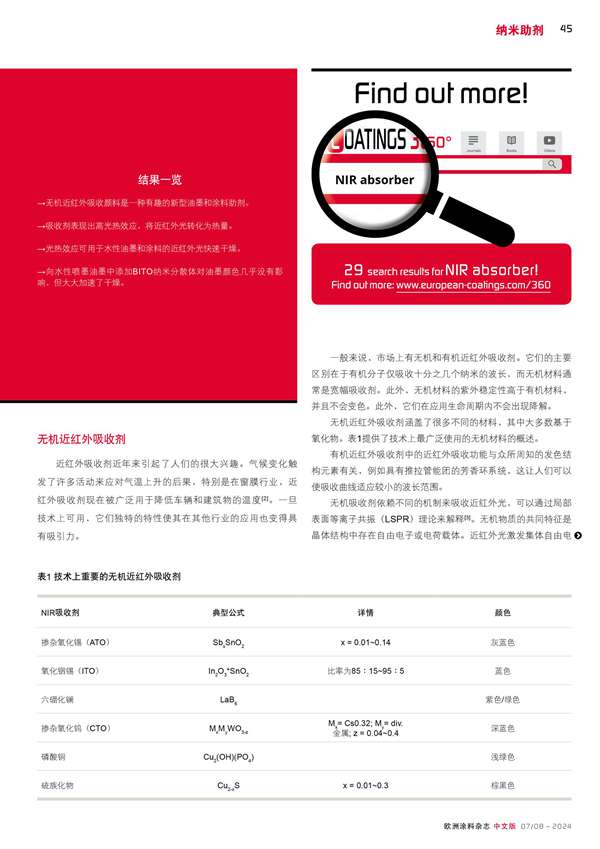 近紅外吸收劑作為油墨和涂料功能納米助劑