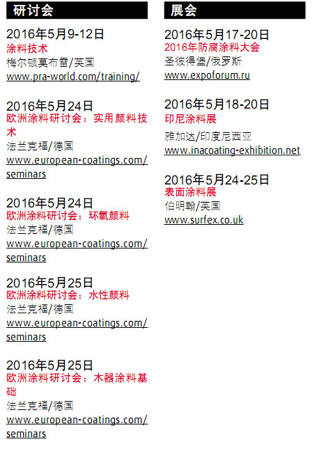 2016年5-7月期間的研討會、會議、展會、網(wǎng)絡活動日程表。