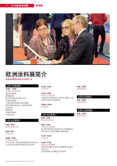 歐洲涂料展和會(huì)議的計(jì)劃日程一覽