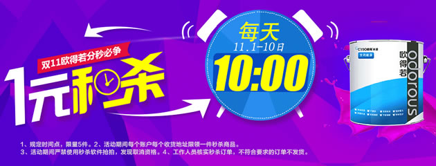 根據(jù)促銷活動政策,“雙十一”當(dāng)天,除家裝水漆套裝、凈味防霉乳膠漆套裝和超白易洗套裝等人氣爆品“有買有贈”外,晨陽水漆還將開啟“2小時瘋狂返利”的活動,在雙11當(dāng)天00:00:00完成支付的客戶將享受支付金額100%返利的優(yōu)惠!