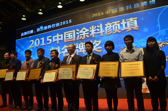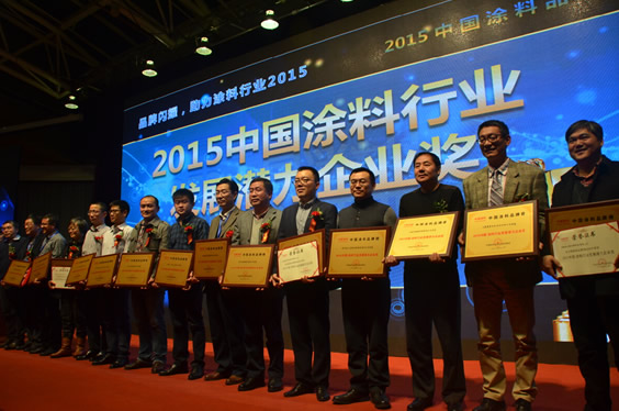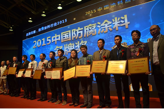2015年12月18日晚,在北京舉辦的“2015中國涂料品牌榜頒獎活動”中,“2015中國涂料品牌榜”隆重揭曉。共評出中國建筑涂料名牌獎、中國防腐涂料名牌獎、中國木器涂料名牌獎、中國汽車涂料名牌獎、中國藝術涂料名牌獎、中國涂料裝備名牌獎、中國涂料顏填料名牌獎、中國涂料原輔材料名牌獎、中國涂料行業發展潛力企業獎、中國涂料行業精英獎、中國涂料行業伯樂獎11類獎項,上榜品牌、企業及個人348個。