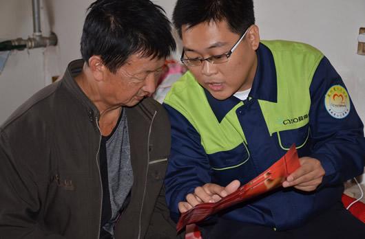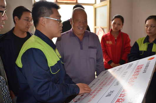 晨陽水漆工作人員為滿城小賽村路得申講解保險(xiǎn)事宜