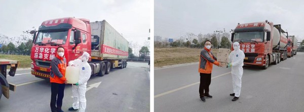 萬華化學與回天新材共同捐贈用于武漢火神山、雷神山醫院項目建設的膠粘劑產品及其原料。