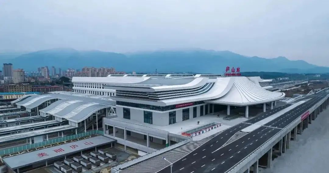 2022年4月底,九江市首座高鐵站——廬山站西站房正式開(kāi)通運(yùn)營(yíng)。站臺(tái)設(shè)計(jì)融入廬山云霧和山水的柔美形態(tài),色彩明快,意境唯美,與遠(yuǎn)處的自然景觀遙相呼應(yīng),于山影水語(yǔ)間大放異彩!