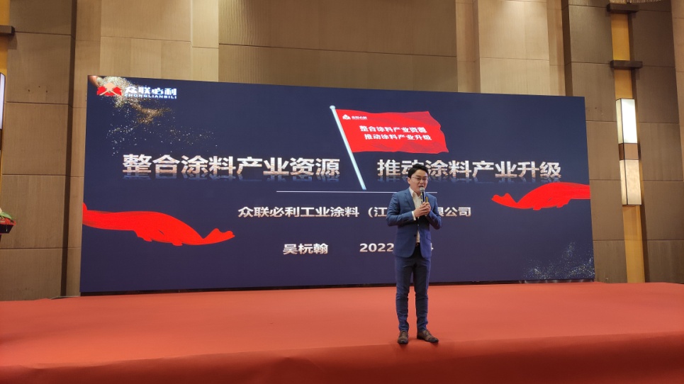 眾聯必利工業涂料(江蘇)有限公司吳杬翰品牌部負責人作《整合涂料產業資源,推動涂料產業升級》主題演講,他認為在當前錯綜復雜的經濟新形勢下,涂料產業的整合必須實行改革、創造規范高效的生產條件。整合后合理利用資源創造大幅的降本空間,最終實行全產業鏈整合,推動涂料產業升級。