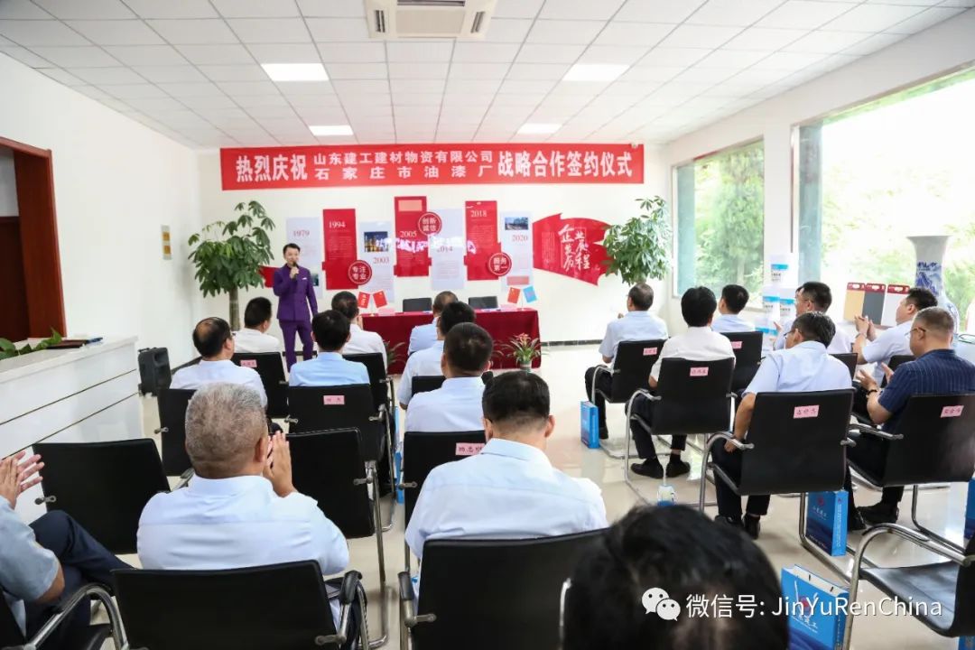 石家莊市油漆廠董事長焦亞平、山東建工建材物資有限公司董事長任俊生,代表雙方簽約。標志著雙方合作正式邁出了關(guān)鍵一步。