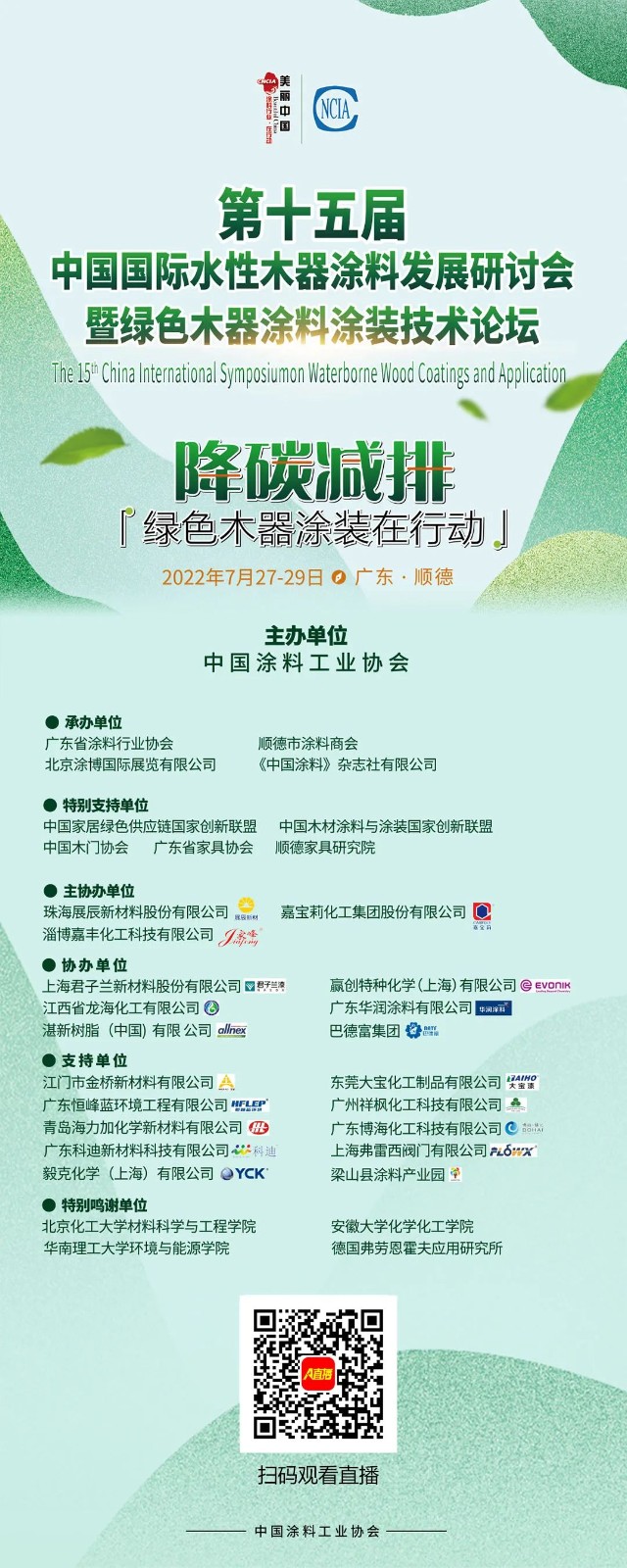 由中國涂料工業協會主辦的第十五屆中國國際水性木器涂料發展研討會暨綠色木器涂料涂裝技術論壇,7月28日在廣東順德舉行。大會圍繞推動環境友好型木器涂料的發展助力“雙碳”目標這一主旨,就如何實現綠色低碳的木器涂裝展開研討。