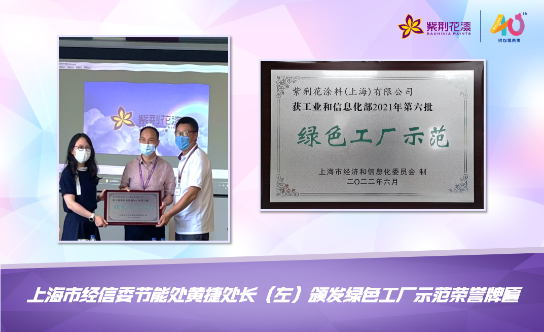早前,國家工業和信息化部發布2021年度“綠色工廠示范”名單,紫荊花涂料(上海)有限公司榜上有名,旗下多款產品同時入選綠色設計產品名單。