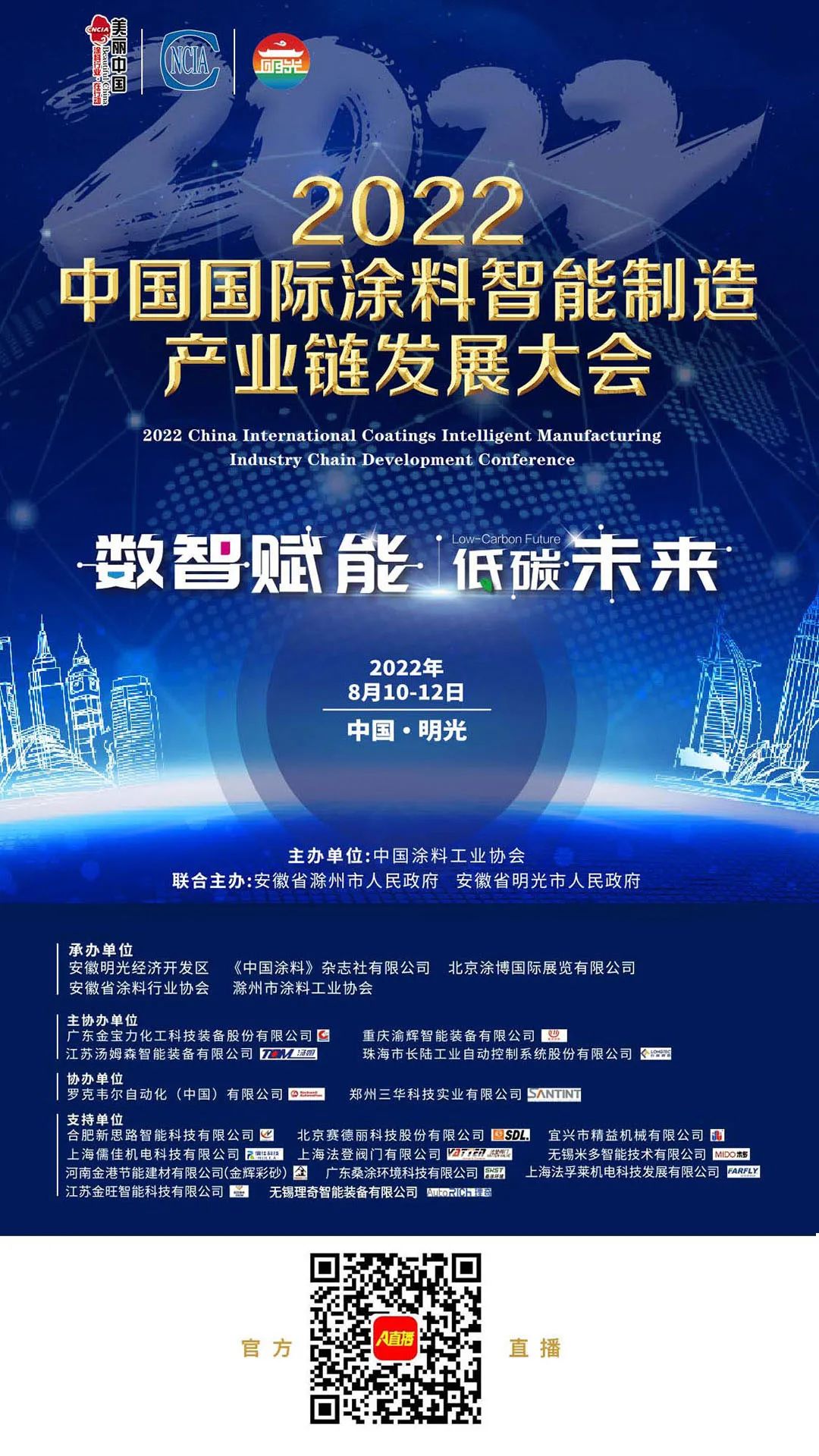 2022年8月10-12日, 中國涂料工業(yè)協(xié)會與安徽省滁州市人民政府、明光市人民政府聯(lián)合主辦的“2022中國國際涂料智能制造產(chǎn)業(yè)鏈發(fā)展大會” 在安徽明光盛大召開。會議重點(diǎn)圍繞“數(shù)智賦能,低碳未來”,邀請來自涂料全產(chǎn)業(yè)鏈生產(chǎn)企業(yè)、智能裝備與系統(tǒng)制造企業(yè),以及國內(nèi)外智能裝備研究院所的專家學(xué)者,共同探討涂料行業(yè)綠色智能制造全產(chǎn)業(yè)鏈協(xié)同發(fā)展和有效對接,分享涂料行業(yè)如何加快數(shù)字化改造,實(shí)現(xiàn)全行業(yè)的綠色智能轉(zhuǎn)型升級,并同時為進(jìn)一步打造明光綠色涂料產(chǎn)業(yè)園搭建高效的平臺。