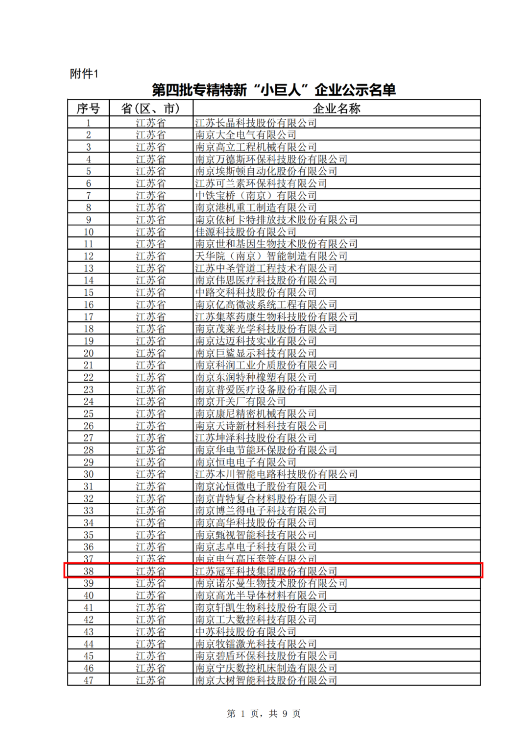 8月9日,根據國家工信部統(tǒng)一部署,江蘇省工信廳發(fā)布了《關于江蘇省第四批專精特新“小巨人”企業(yè)和第一批專精特新“小巨人”復核通過企業(yè)名單的公示》,全省共425家企業(yè)進入第四批專精特新“小巨人”名單,其中南京市入圍62家,江蘇冠軍集團成功入選,這是繼去年集團獲評省級專精特新小巨人企業(yè)之后,一年內再創(chuàng)新高,獲得的又一重量級榮譽。