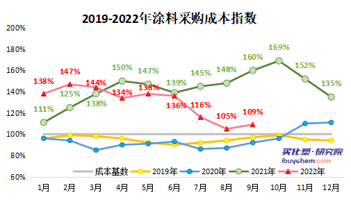 伴隨國際經(jīng)濟(jì)形勢和地緣沖突等影響,疊加新冠疫情和風(fēng)控影響,在涂料下游需求疲軟的情況,涂料上游原材料的行情波動幅度陡然增加,單月漲跌幅超過20%,這對于涂料企業(yè)的采購計(jì)劃,產(chǎn)生了非常不利的影響。原材料價格的變化雖波動明顯但均值較高,涂料成品變化幅度不大但均值較低,成品價格的上漲幅度遠(yuǎn)不及原材料。如果從價格傳導(dǎo)來看,國內(nèi)涂料企業(yè)承擔(dān)較為嚴(yán)峻的成本壓力。如何建立起穩(wěn)健、有效的采購策略和采購計(jì)劃,來抵消原材料波動帶來的被動影響,將是目前涂料企業(yè)保證企業(yè)利潤的工作之一。