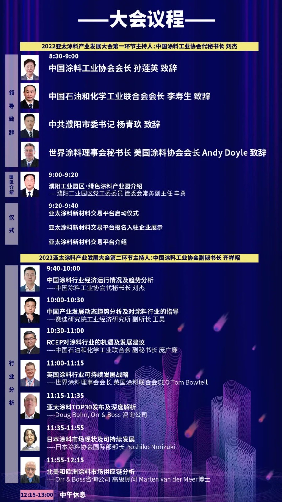 11月2日,以“科技創新,綠色發展”為主題、由中國涂料工業協會、濮陽市人民政府聯合主辦的“2022年亞太國際涂料產業發展大會”以網絡直播形式正式拉開帷幕,大咖云集,干貨滿滿,吸引了數以百萬計的涂料、涂裝及上下游人士在線觀看。