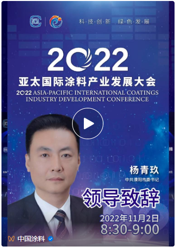 11月2日,以“科技創(chuàng)新,綠色發(fā)展”為主題、由中國涂料工業(yè)協(xié)會、濮陽市人民政府聯(lián)合主辦的“2022年亞太國際涂料產(chǎn)業(yè)發(fā)展大會”以網(wǎng)絡(luò)直播形式正式拉開帷幕,大咖云集,干貨滿滿,吸引了數(shù)以百萬計的涂料、涂裝及上下游人士在線觀看。