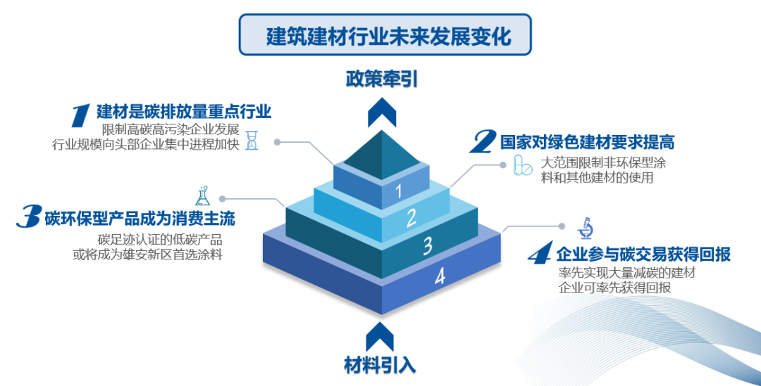隨著雙碳“1+N”國家政策+綠色建材下鄉(xiāng)等政策的出臺,對建材行業(yè)的可持續(xù)發(fā)展提出了新的要求。