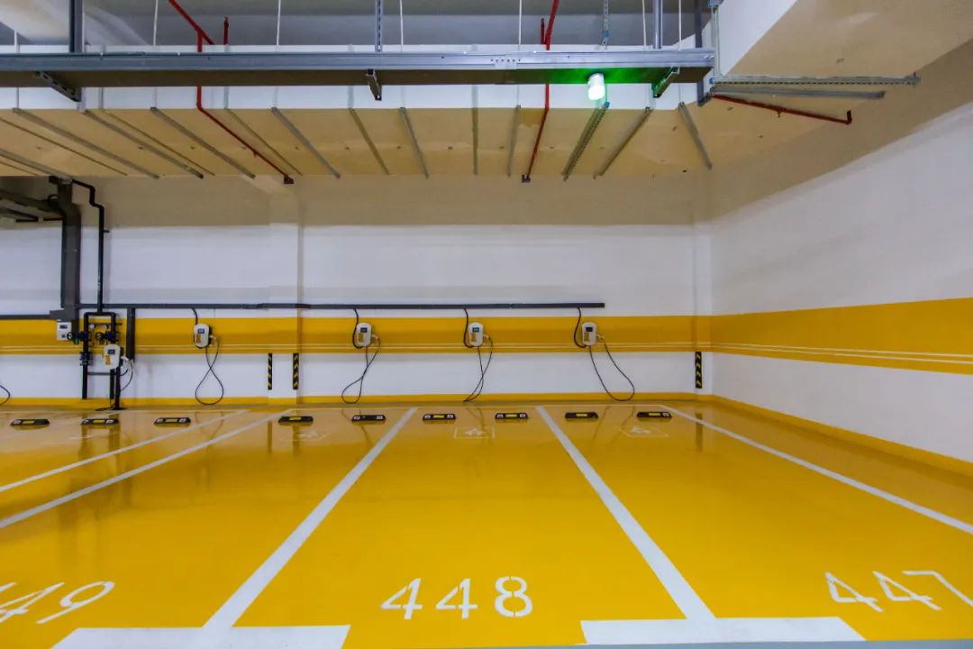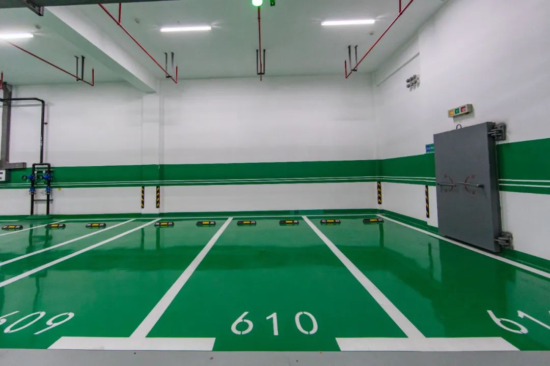 考慮到行車道走車頻繁,對(duì)地坪的耐磨性及強(qiáng)度要求相對(duì)較高;為保證行人安全和降低行車噪音,且具備一定的防滑效果,“傳化漆”品牌為臨平體育中心地下車庫鋪設(shè)耐磨防滑的環(huán)氧地坪涂料,設(shè)計(jì)厚度1~2mm。