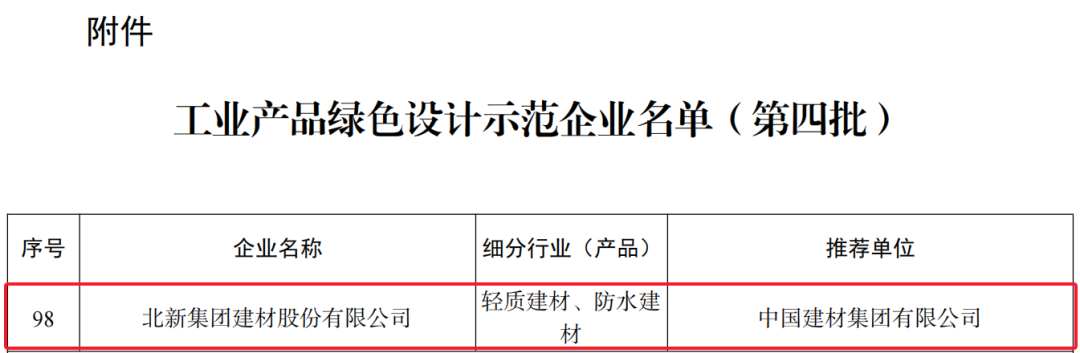 11月22日,工業(yè)和信息化部公布了第四批工業(yè)產(chǎn)品綠色設計示范企業(yè)名單,北新建材再添國家級榮譽——獲評“工業(yè)產(chǎn)品綠色設計示范企業(yè)”。