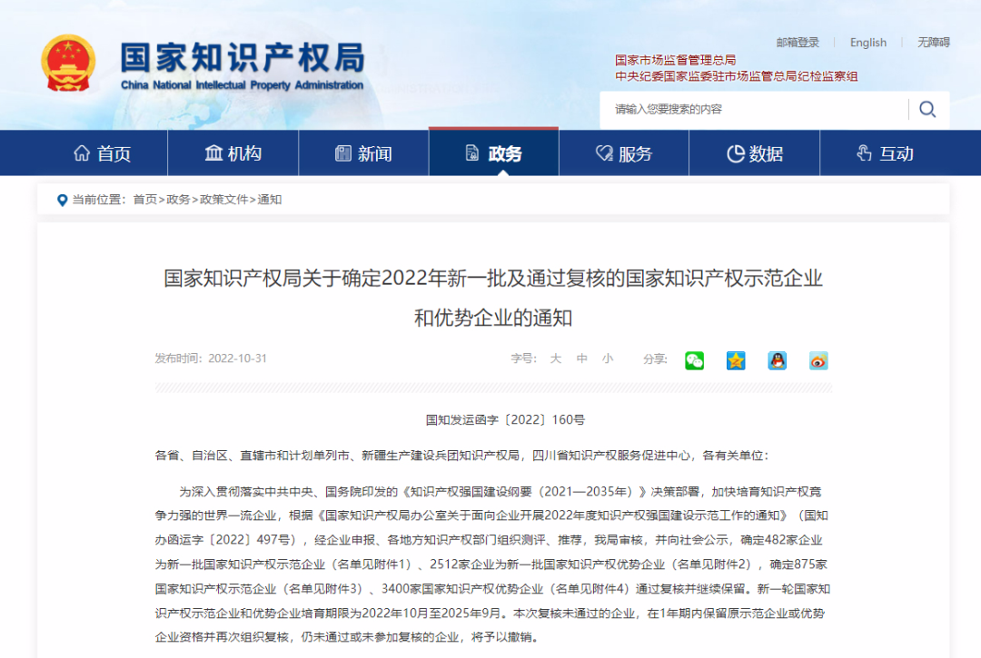 近日,國家知識產(chǎn)權(quán)局確定了2022年新一批及通過復(fù)核的國家知識產(chǎn)權(quán)示范企業(yè)和優(yōu)勢企業(yè)名單,信和憑借在知識產(chǎn)權(quán)創(chuàng)造、運用、管理及保護(hù)等方面的多重優(yōu)勢,通過“國家知識產(chǎn)權(quán)優(yōu)勢企業(yè)”復(fù)核認(rèn)定。