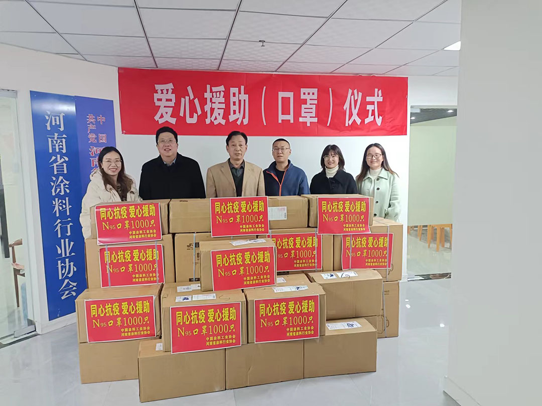 為感謝中國涂料工業協會對河南省涂料行業疫情防控工作的關心、關愛,落實河南省涂料行業協會謝偉會長“一定要把中國涂料工業協會和孫蓮英會長的關懷送到相關企業”的指示精神,河南省涂料行業協會購置10000只N95口罩與中國涂料工業協會援助的“愛心口罩”一道,分別配送到了疫情防控形勢嚴峻的有關會員企業。由于河南部分地區疫情形勢依然嚴峻,個別企業因物流受限還未收到,多數企業收到并已回復。