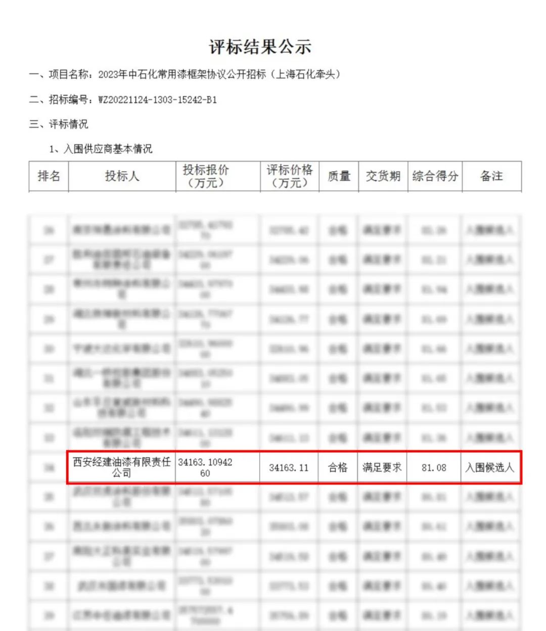 日前,西安經(jīng)建油漆有限責(zé)任公司成功中標(biāo)2023年中石化涂料采購(gòu)常用漆標(biāo)段。