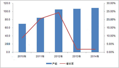 圖表 2:2010-2014年鞋底原液產(chǎn)能