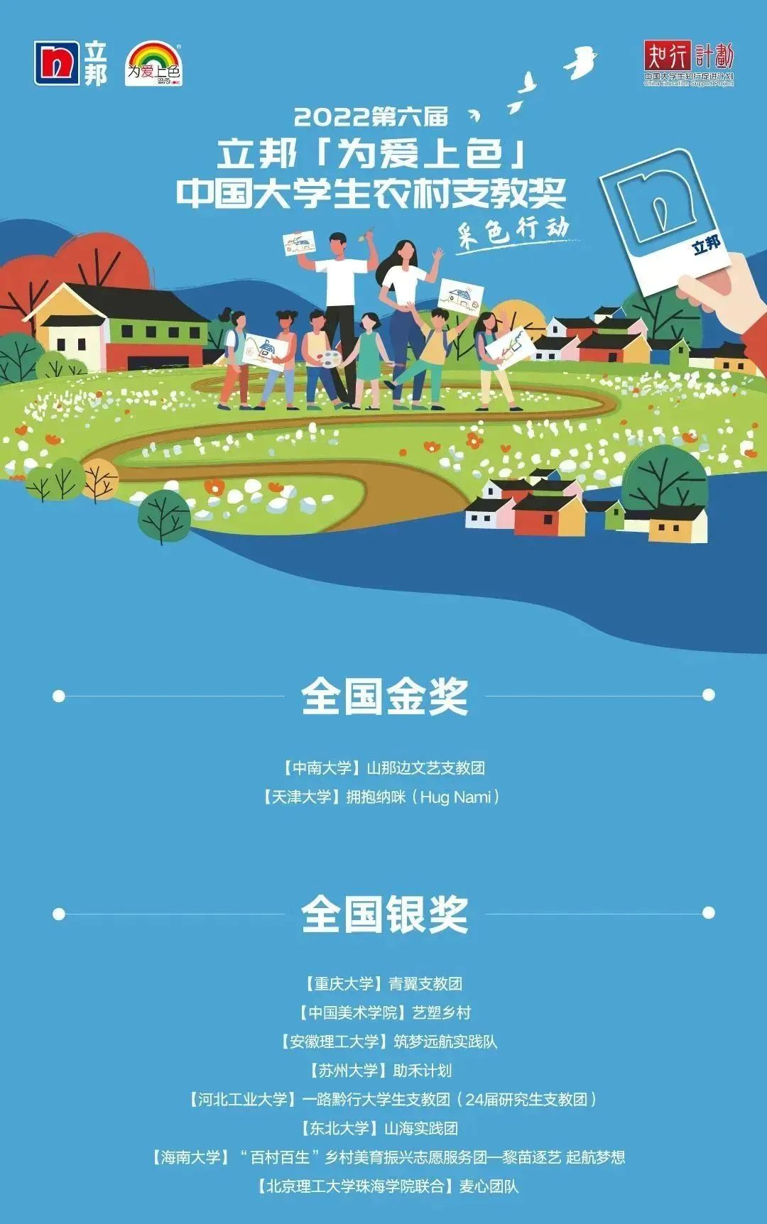 2022年第六屆立邦「為愛上色」中國大學(xué)生農(nóng)村支教獎(jiǎng)獲獎(jiǎng)名單