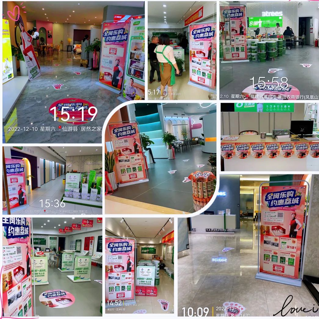 福建省170多家三棵樹專賣店參與活動,統一造勢,擴大影響力,每家門店內活動物料生動化布置,結合政府補貼,滿額立減,門店熱銷產品套餐,兒童漆買面送底,藝術漆雅典石驚爆價,膩子粉買1送1等促銷力度,實實在在給予消費者優惠。由政府做背書,通過銀聯云閃付APP掃碼支付即可直接享受立減,聚焦滿5000元立減500元,讓活動更有公信力,同時三棵樹線下投入大量活動廣告,各大小區電梯活動廣告,小區入口行架廣告,鋪天蓋地宣傳,惠滿全城,活動期間上千名業主選擇三棵樹,業主紛紛轉發朋友圈為三棵樹代言宣傳“全閩樂購”活動。