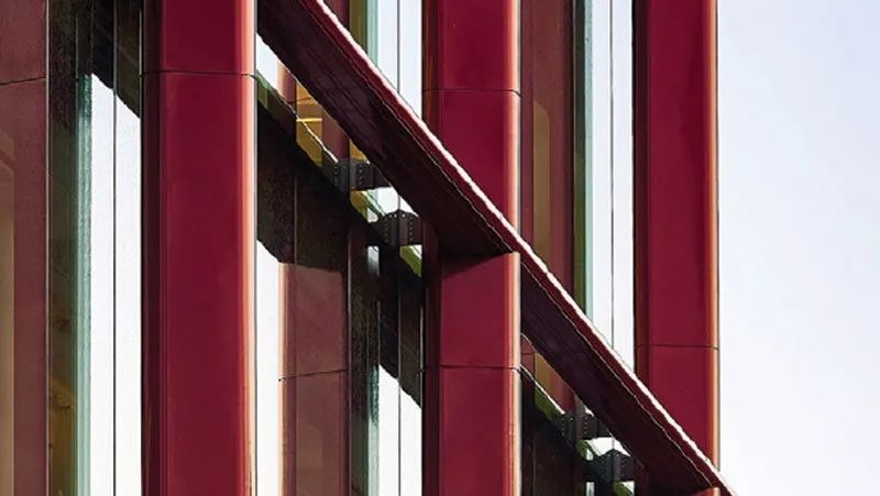 為了開發令人驚嘆的“銀河紅”配方及其閃閃發光的美學效果,PPG建筑金屬涂料團隊幫助客戶定制顏色,使得 PPG Coraflon 粉末面漆結合了玻璃薄片技術,為金屬框架增加了立體的閃爍光澤。