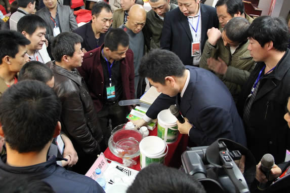 任長峰介紹2015邯鄲招商優惠政策,堅定了經營華隆涂料的信心,也激起了經銷商的訂貨熱情,尤其對水性涂料和新品興趣最濃,超過六成客戶現場下單。