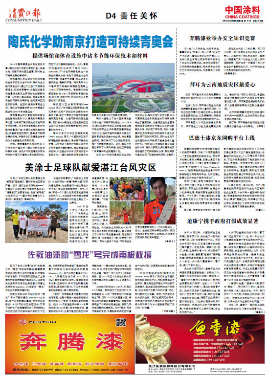 《中國涂料報》(電子版)的一切內容(包括但不限于文字、圖片、PDF、圖表、標志、標識、商標、版面設計、專欄目錄與名稱、內容分類標準以及為讀者提供的任何信息)僅供中國涂料信息網讀者閱讀、學習研究使用,未經中國涂料雜志社有限公司及/或相關權利人書面授權,任何單位及個人不得將《中國涂料報》(電子版)所登載、發布的內容用于商業性目的,包括但不限于轉載、復制、發行、制作光盤、數據庫、觸摸展示等行為方式,或將之在非本站所屬的服務器上作鏡像。否則,中國涂料雜志社有限公司將采取包括但不限于網上公示、向有關部門舉報、訴訟等一切合法手段,追究侵權者的法律責任。