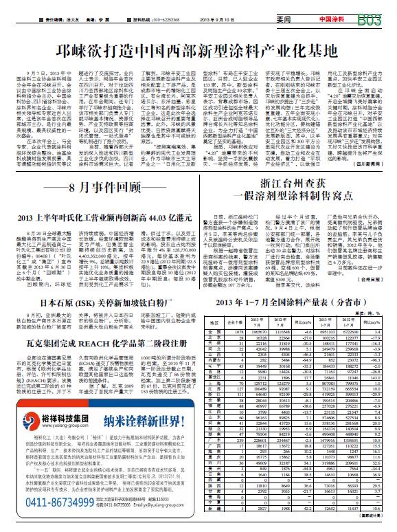 《中國涂料報》(電子版)的一切內容(包括但不限于文字、圖片、PDF、圖表、標志、標識、商標、版面設計、專欄目錄與名稱、內容分類標準以及為讀者提供的任何信息)僅供中國涂料信息網讀者閱讀、學習研究使用,未經中國涂料雜志社有限公司及/或相關權利人書面授權,任何單位及個人不得將《中國涂料報》(電子版)所登載、發布的內容用于商業性目的,包括但不限于轉載、復制、發行、制作光盤、數據庫、觸摸展示等行為方式,或將之在非本站所屬的服務器上作鏡像。否則,中國涂料雜志社有限公司將采取包括但不限于網上公示、向有關部門舉報、訴訟等一切合法手段,追究侵權者的法律責任。