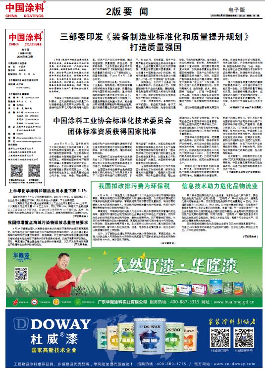 《中國涂料報》(電子版)的一切內容(包括但不限于文字、圖片、PDF、圖表、標志、標識、商標、版面設計、專欄目錄與名稱、內容分類標準以及為讀者提供的任何信息)僅供中國涂料信息網讀者閱讀、學習研究使用,未經中國涂料雜志社有限公司及/或相關權利人書面授權,任何單位及個人不得將《中國涂料報》(電子版)所登載、發布的內容用于商業性目的,包括但不限于轉載、復制、發行、制作光盤、數據庫、觸摸展示等行為方式,或將之在非本站所屬的服務器上作鏡像。否則,中國涂料雜志社有限公司將采取包括但不限于網上公示、向有關部門舉報、訴訟等一切合法手段,追究侵權者的法律責任。