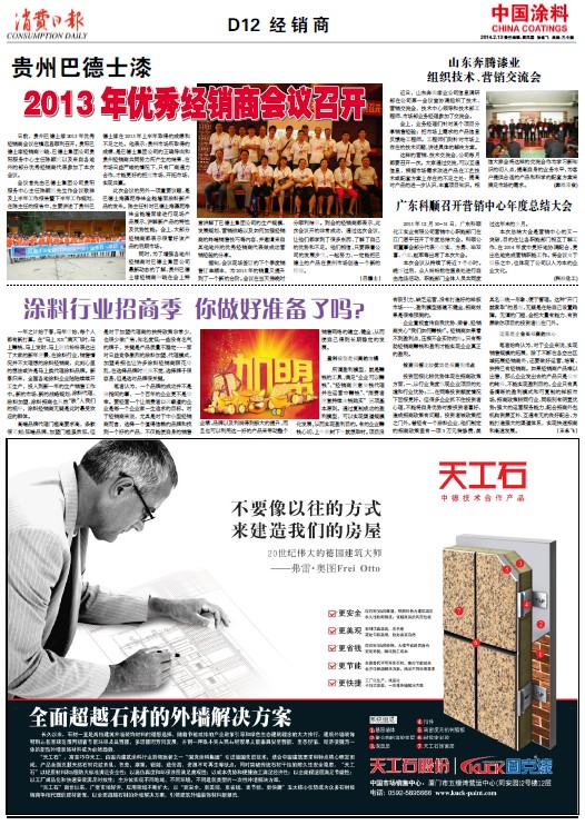 《中國涂料報》(電子版)的一切內容(包括但不限于文字、圖片、PDF、圖表、標志、標識、商標、版面設計、專欄目錄與名稱、內容分類標準以及為讀者提供的任何信息)僅供中國涂料信息網讀者閱讀、學習研究使用,未經中國涂料雜志社有限公司及/或相關權利人書面授權,任何單位及個人不得將《中國涂料報》(電子版)所登載、發布的內容用于商業性目的,包括但不限于轉載、復制、發行、制作光盤、數據庫、觸摸展示等行為方式,或將之在非本站所屬的服務器上作鏡像。否則,中國涂料雜志社有限公司將采取包括但不限于網上公示、向有關部門舉報、訴訟等一切合法手段,追究侵權者的法律責任。